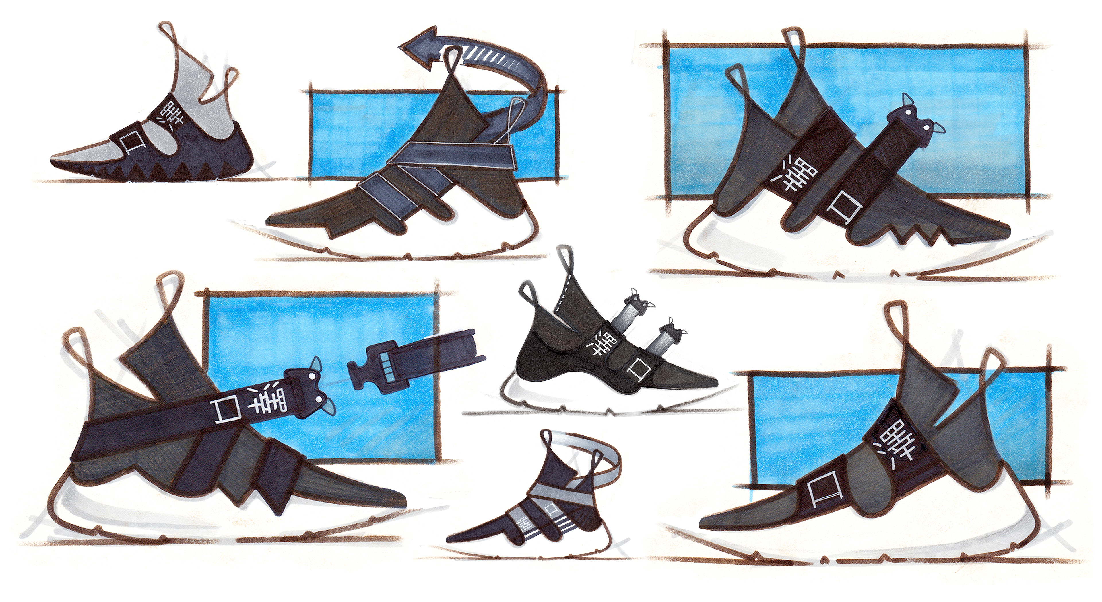 Inspired by traditional leather craftsmanship, Y-3 footwear and Adidas NMD Backpack designs, I set out to create a hightop lifestyle sneaker that marries streetwear fashion with military-grade hardware.