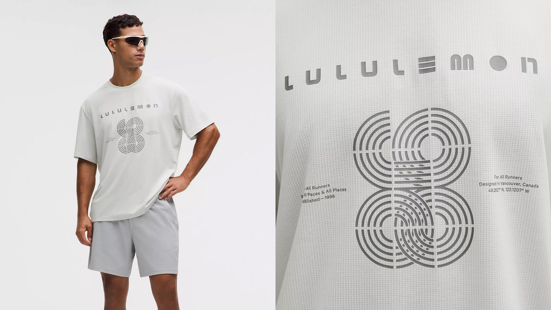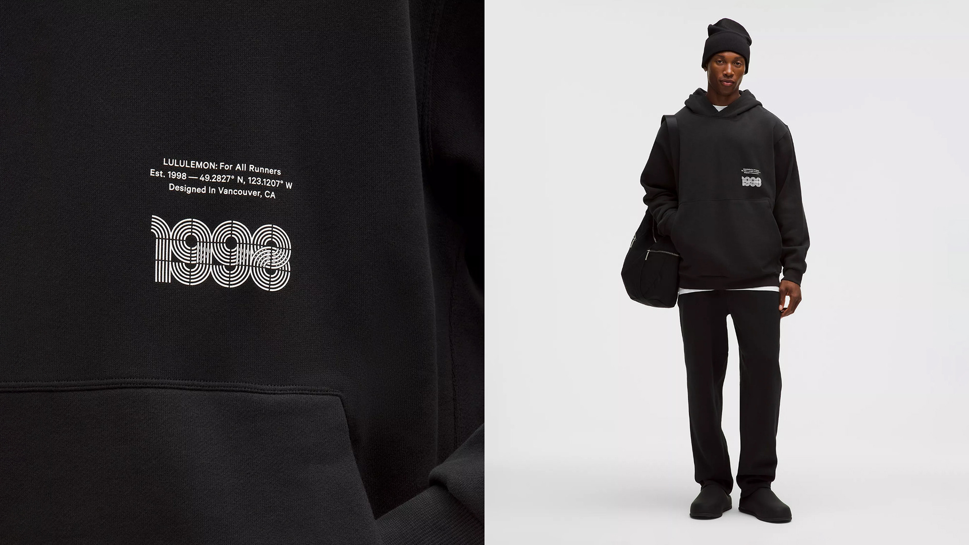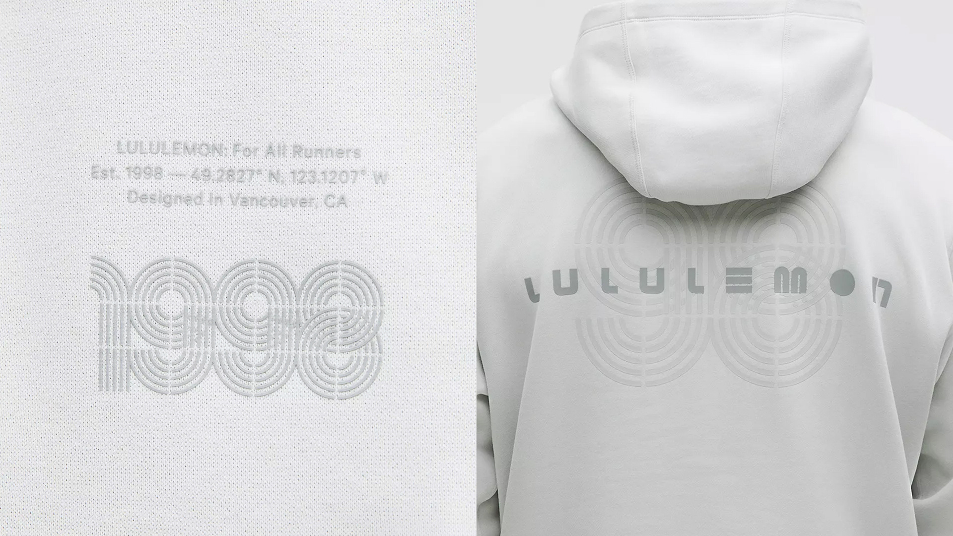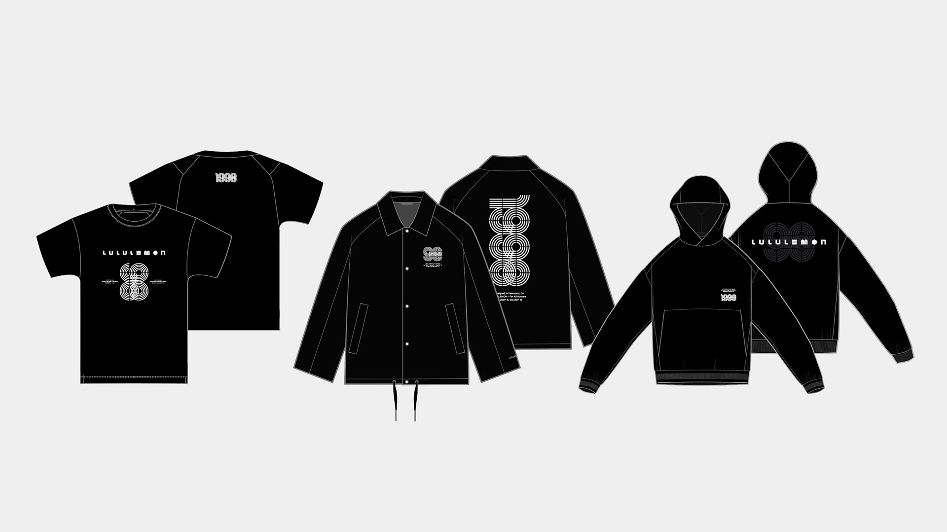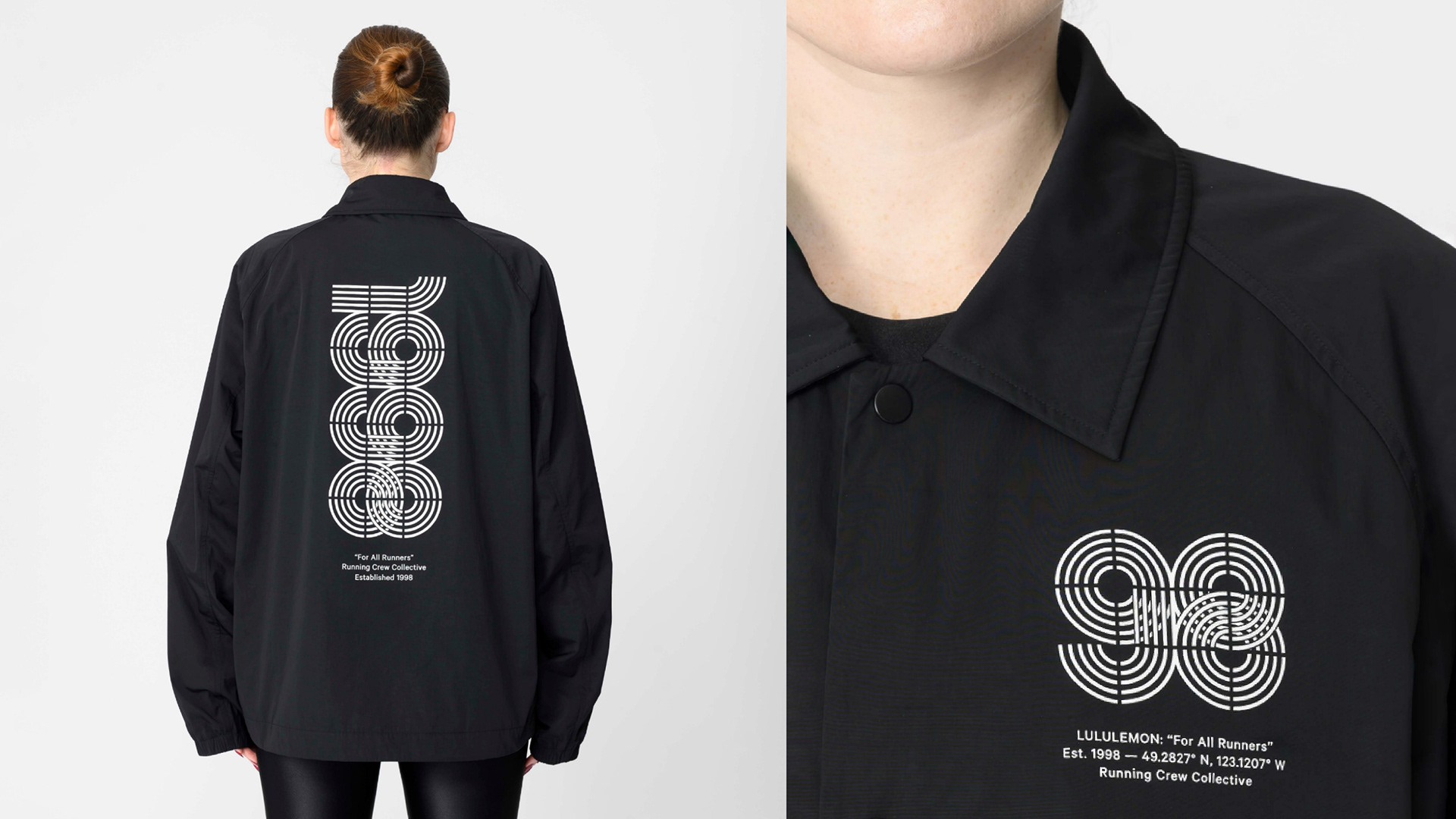 Custom typography, including the wordmark and 1998, designed for Lululemon running. Graphics were inspired by classic running tracks lines and racing speed marks, translating motion into graphic forms. In addition, reflective elements on the hoodie’s back activate at night, adding visibility and energy after dark