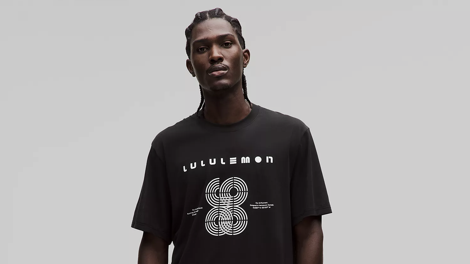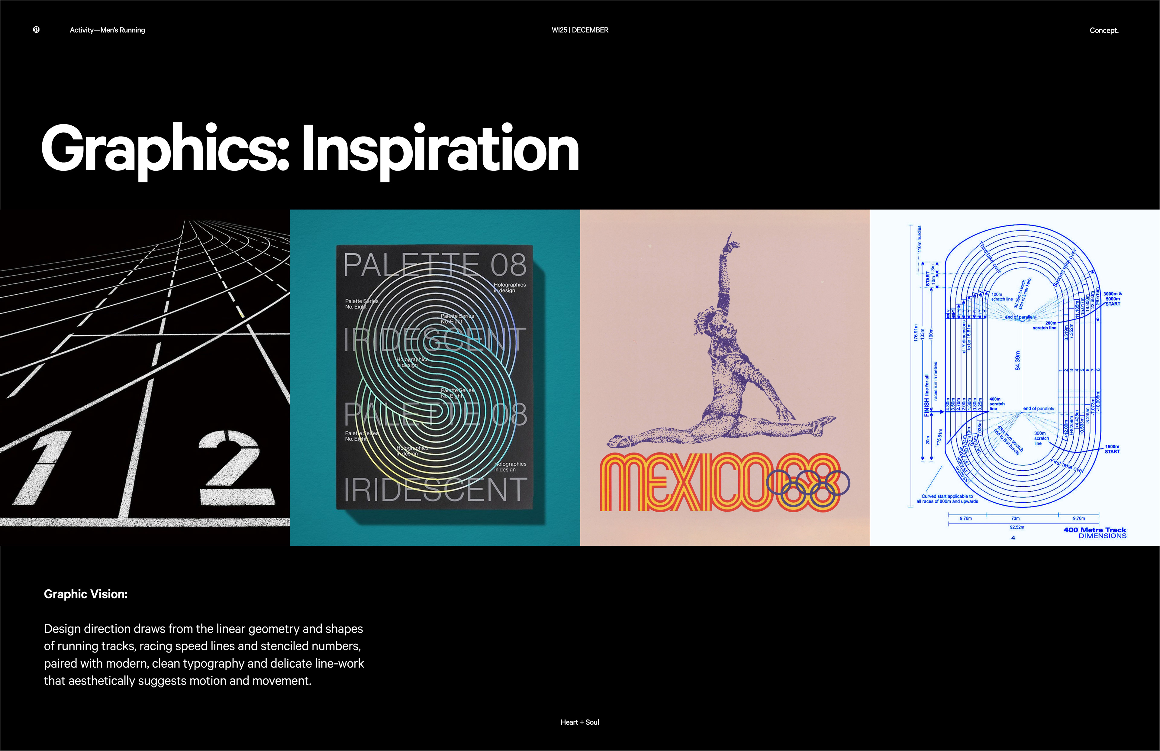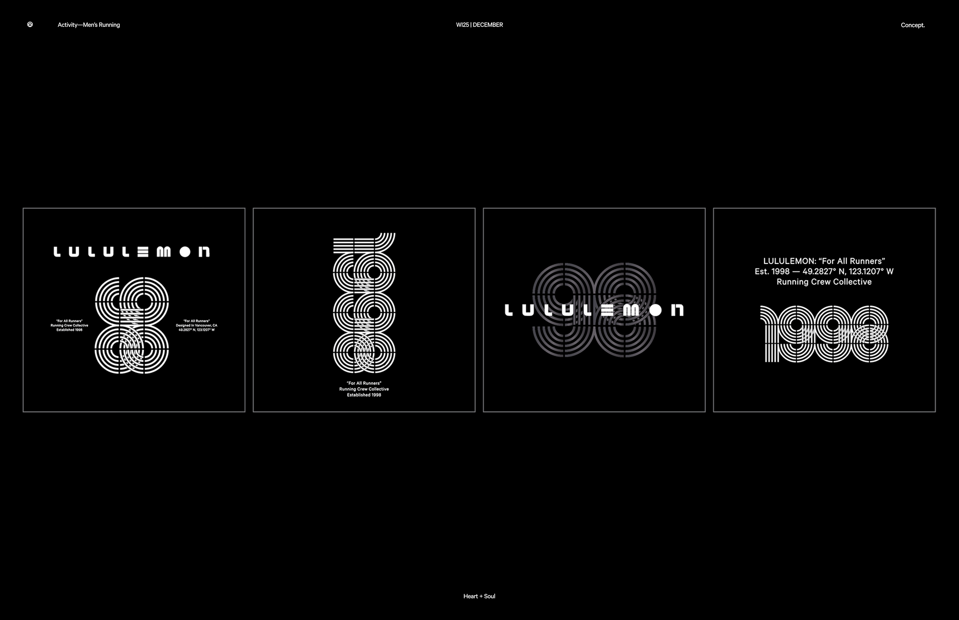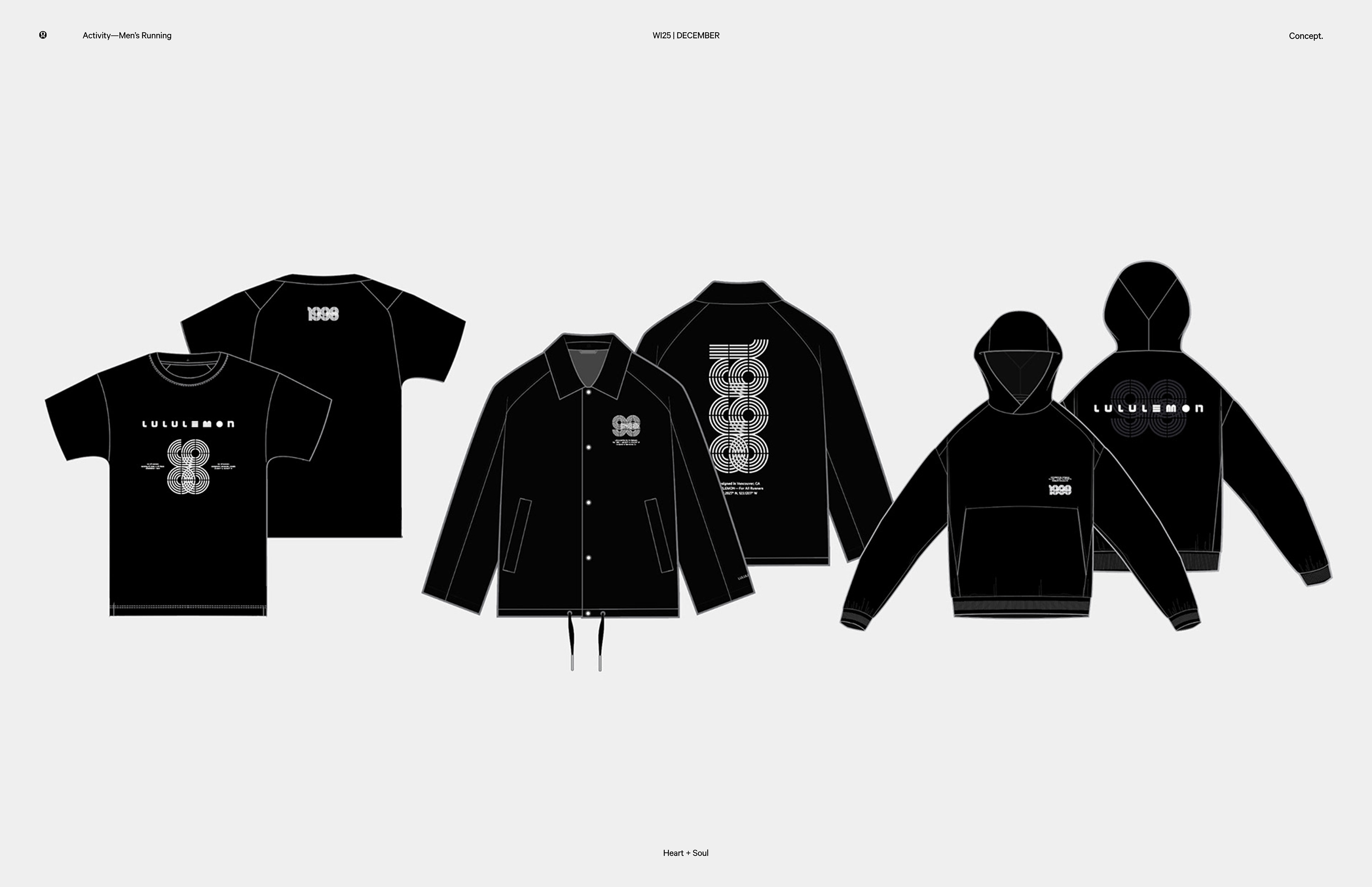 Custom typography designed for Lululemon men's running. Graphics were inspired by classic running tracks lines and racing speed marks, translating motion into graphic forms. In addition, reflective elements on the hoodie’s back activate at night, adding visibility and energy after dark