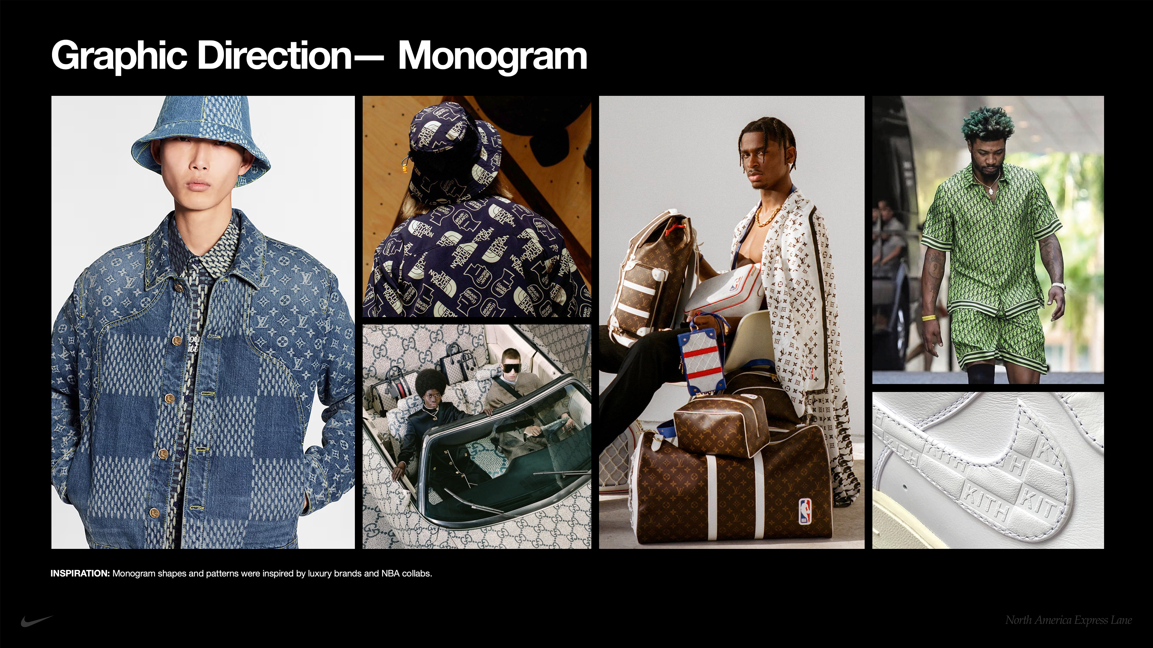 The graphic direction of this project drew inspiration from the visual language of luxury monograms, echoing the iconic patterning of brands like Louis Vuitton and Gucci, as well as the storytelling found in collaborations such as The North Face × Brain Dead and Nike × Kith.