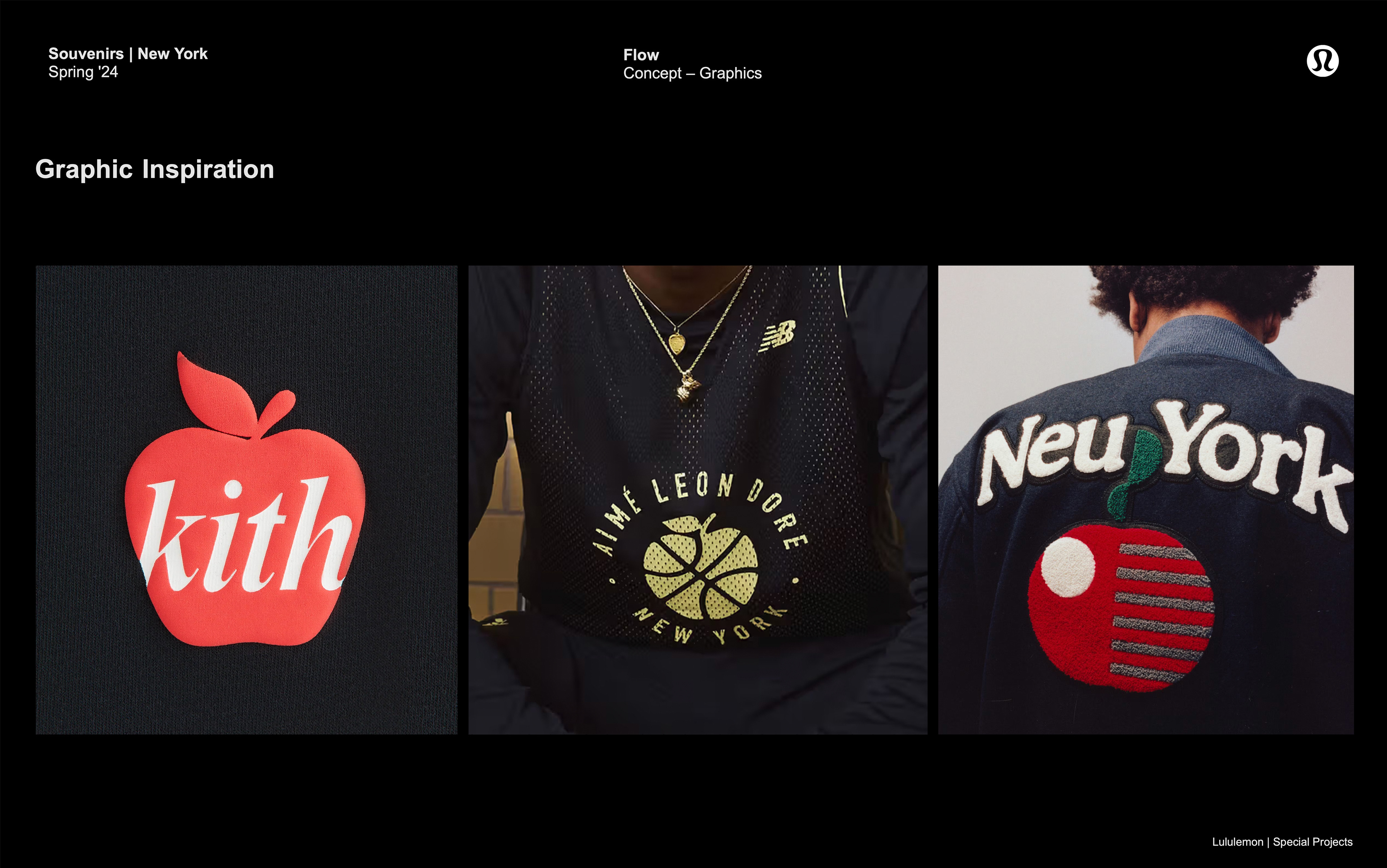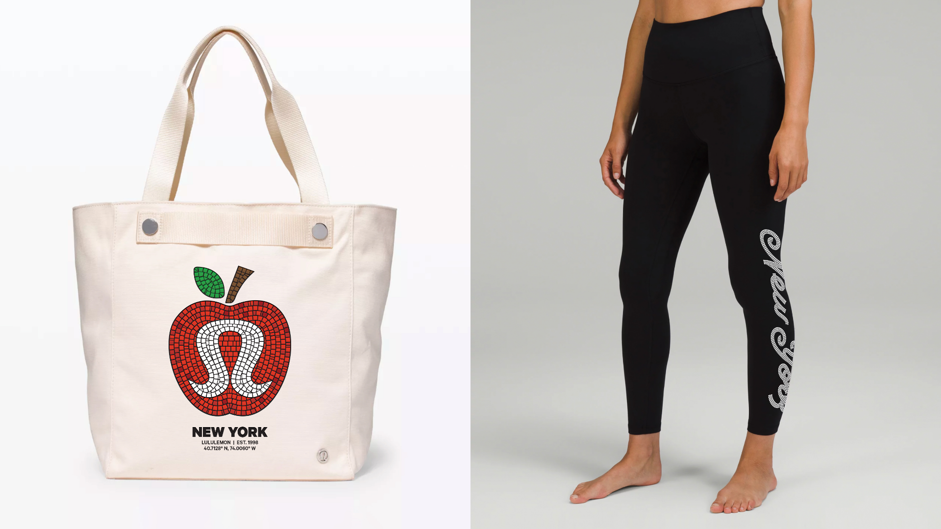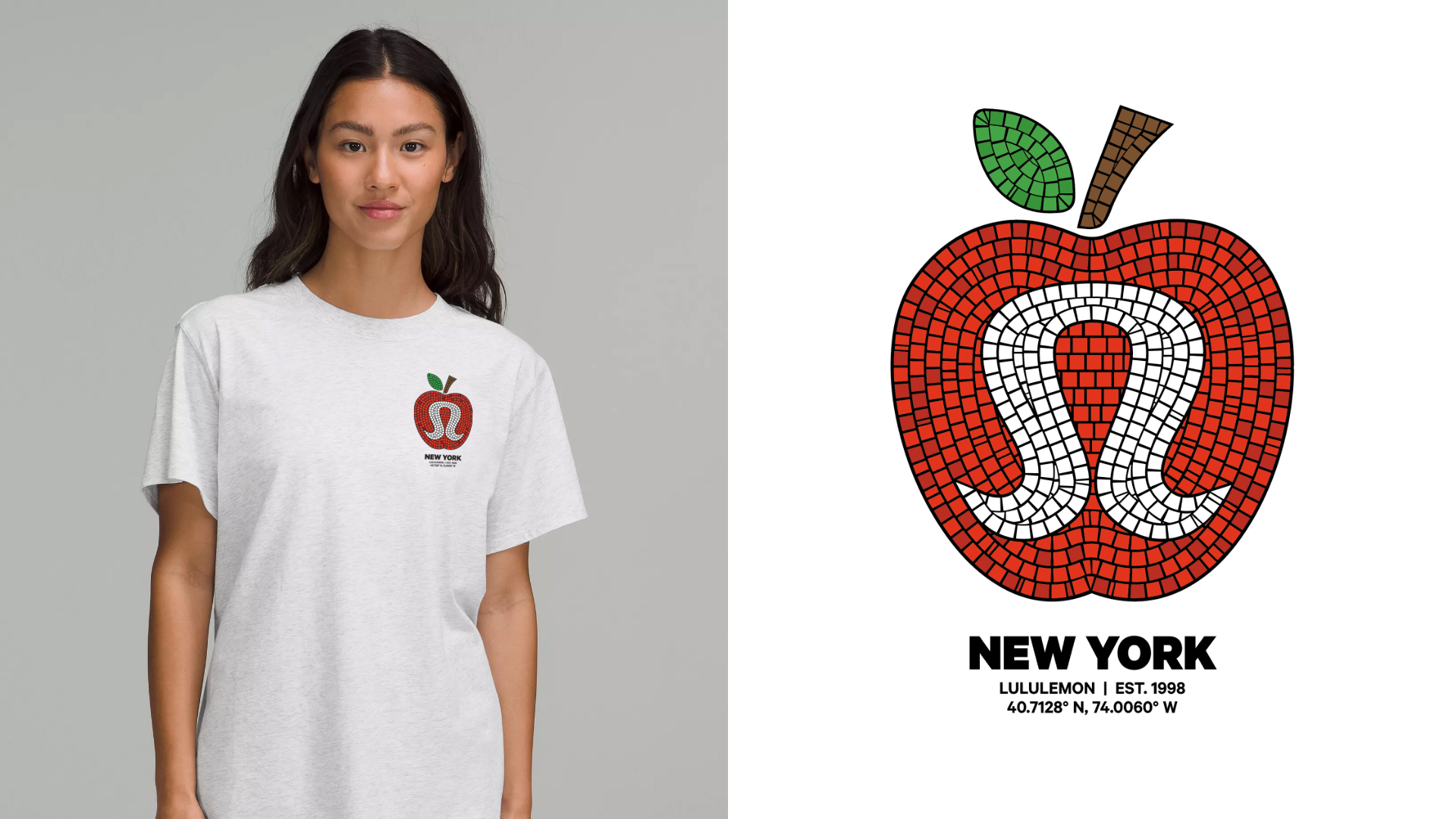 Tiled artwork and custom mosaic typography designed as apparel graphics exclusively for Lululemon New York, inspired by the ornate mosaic signage of NYC subway stations.