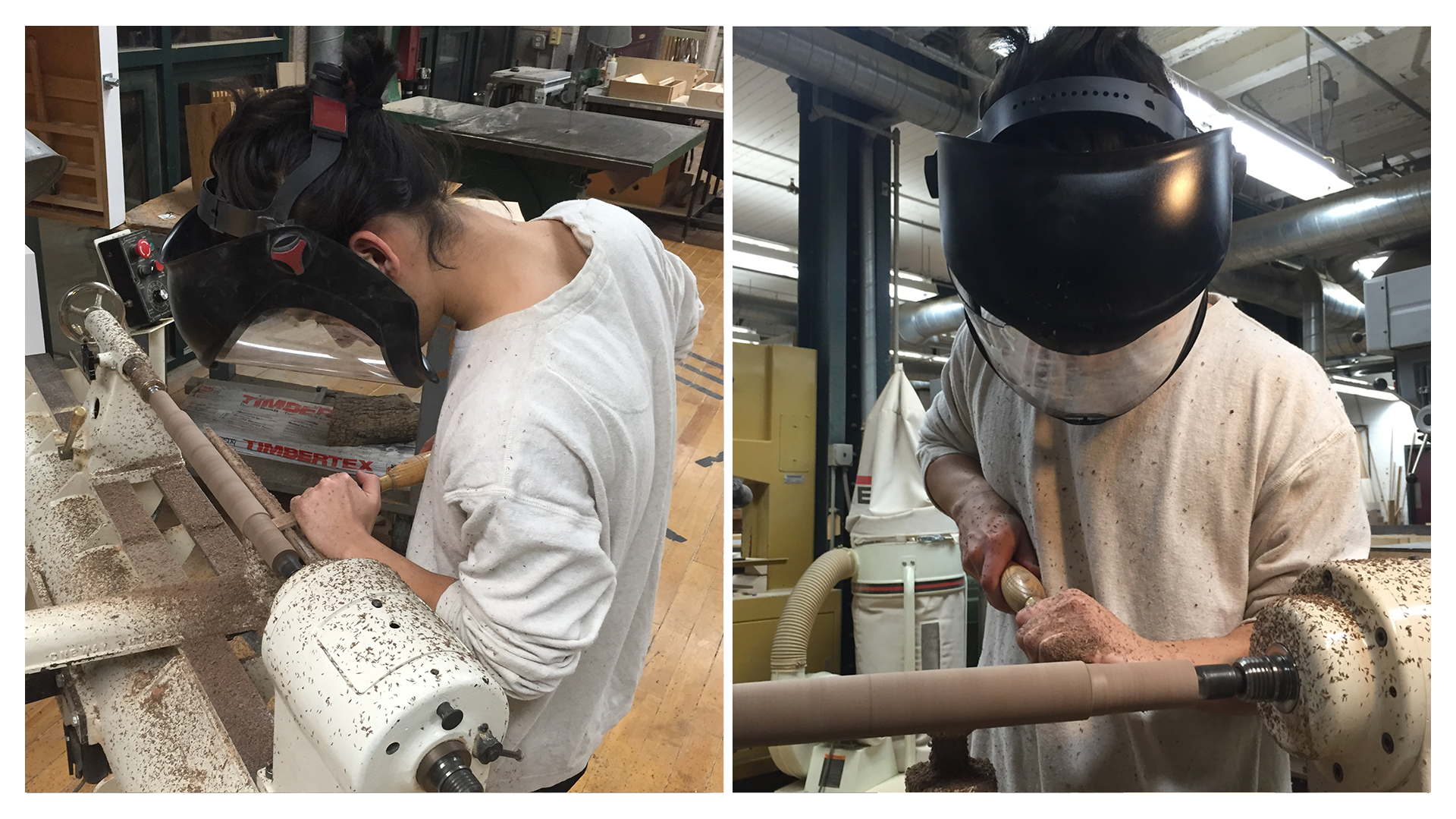 Metal-bending, metal-working, welding, wood turning, and leather work all done by hand.